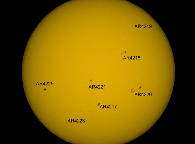 Mit einer ganzen Reihe, recht unterschiedlicher Fleckengruppen präsentieret sich die Sonne heute Nachmittag recht interessant. nach einigen ruhigeren Wochen scheint die Fleckenaktivität nur wieder etwas anzuwachsen.