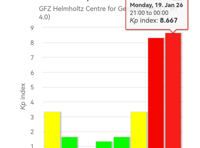 Nach dem Auftauchen eines riesigen coronalen Lochs in der Sonnenatmosphäre in den Tagen zuvor sorgte ein darauf folgender starker Plasmaausbruch im Bereich des Sonnenflecks AR 4341 für eine schnelle Plasmawolke in Richtung Erde. Dort traf sie am 19. Januar gegen 19:30 Uhr auf die Hochatmosphäre und sorgte für einen der stärksten Polarlichtausbrüche der letzten Jahre.