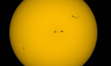 Ein Schwarzweißbild des normalen, monochromatischen Sonnenbildes schließt diesen Bericht ab, in originaler, tiefroter Farbe ließen sich die zahlreichen Oberflächendetails schwerer erfassen – Vergleichsbild anbei.